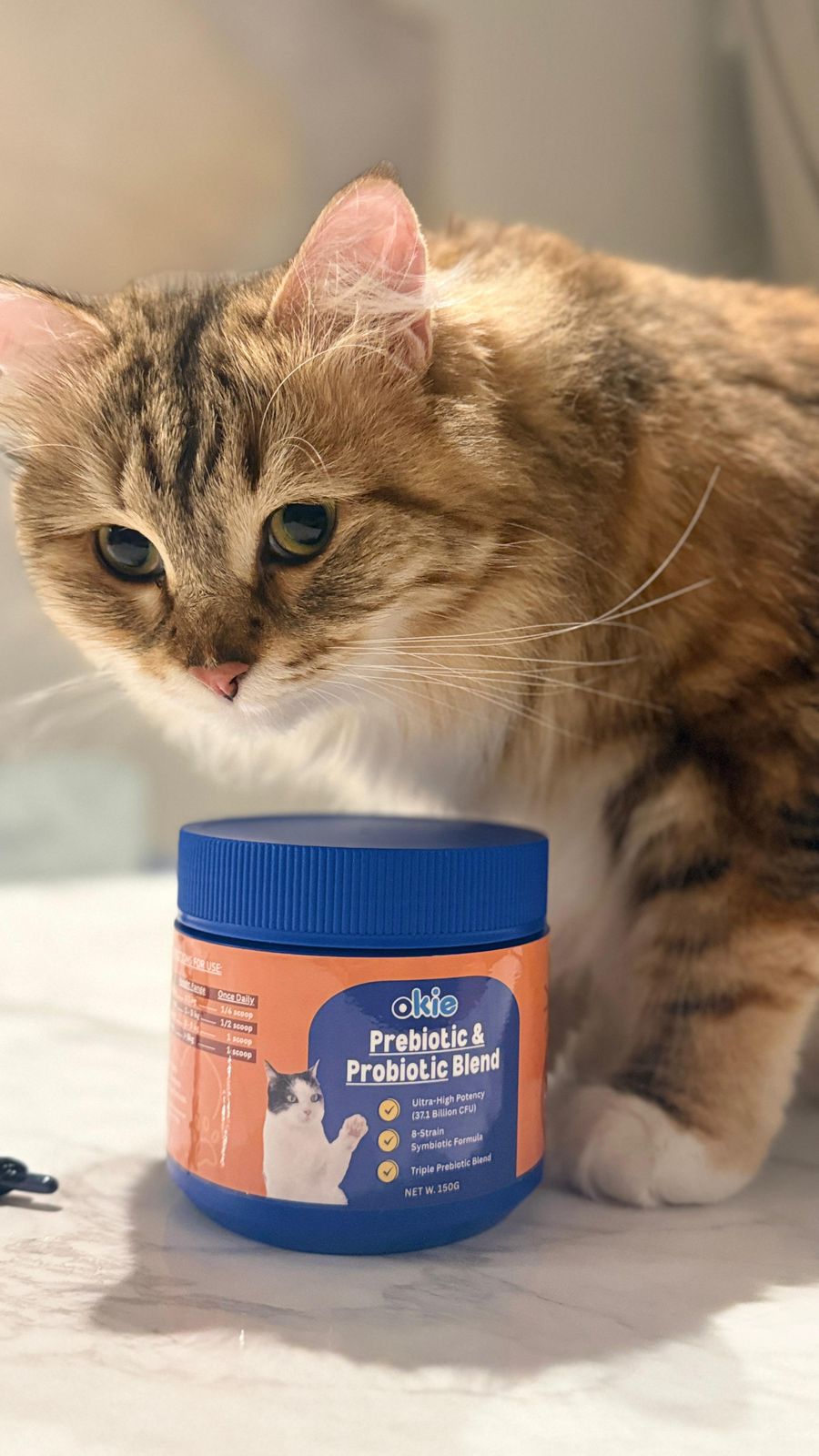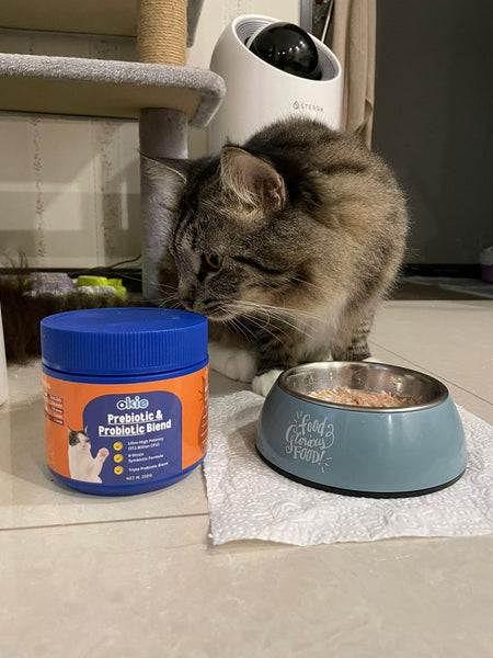 I’ve been giving the Okie prebiotic + probiotic powder to my cat for the past few days of trying and she takes it well when mixed into her food. I like that the powder is so fine that it’s easy to use and doesn’t have a strong smell. It doesn’t affect her appetite at all. Her stools have been more regular and her digestion seems calmer. Overall a fuss-free supplement that’s gentle on her tummy. Looking forward to seeing longer-term benefits.