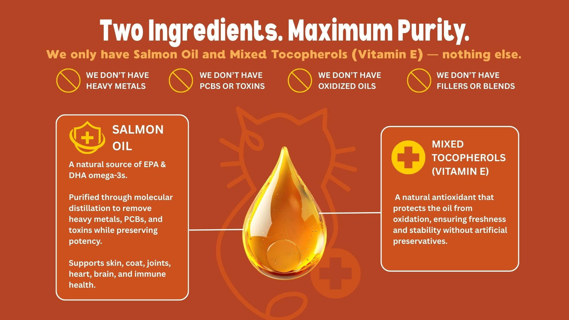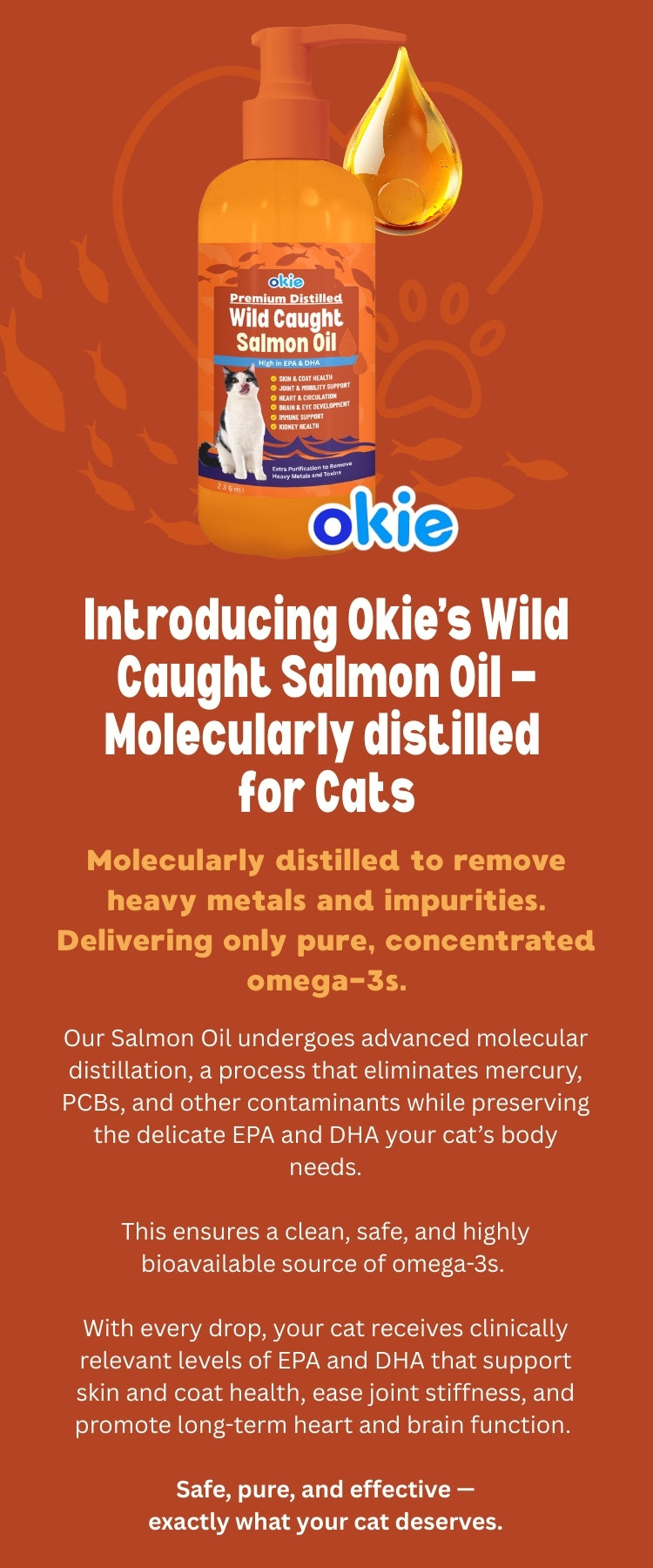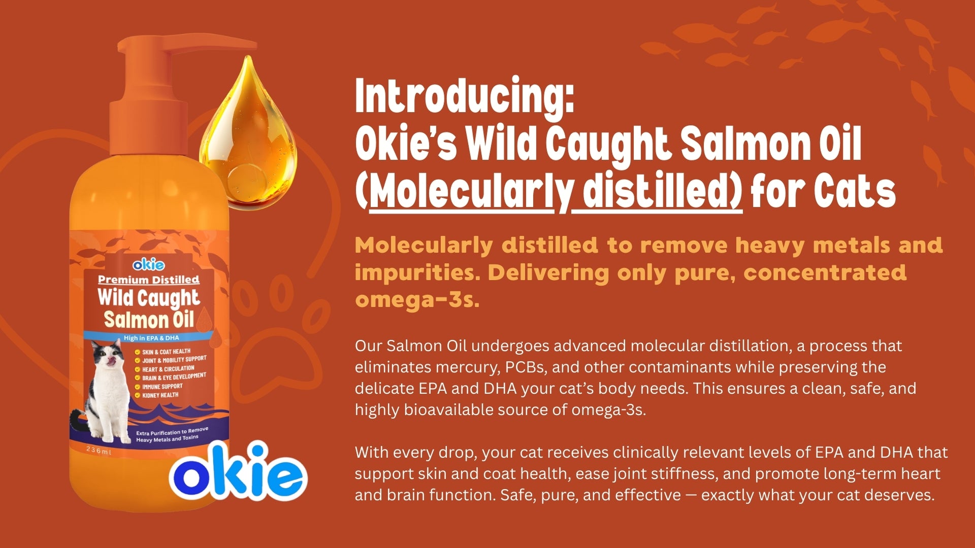 Choose 100% wild-caught salmon oil, ideally sourced from clean, cold waters such as Alaska. Wild salmon naturally contain a healthier balance of omega-3 fatty acids compared to farmed fish. Always check that the product is molecularly distilled, a process that filters out heavy metals, mercury, and other environmental toxins sometimes found in wild-caught fish. This ensures purity while preserving the natural triglyceride form of the oil, which your pet’s body can absorb more efficiently. For the best quality, look for oils that are human-grade, third-party tested, and free from additives or preservatives. These markers indicate a safe, potent, and responsibly produced supplement for your cat or dog.
